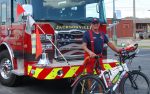 Retired German Firefighter on Cross County Bike Ride for Sick Children Stops Through JFD