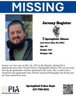 Sangamon County authorities are searching for a Springfield man who has been missing for more than 7 months. 36-year old Jeremy Register was last seen on May 26th at the Meadow Spring Drive apartments near Lake Victoria Drive in Springfield. He was last seen leaving the apartments with his girlfriend in his truck – a […]