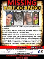 More information has been released about a missing Greene County woman. 39 year old Randa (Long) Davidson was last seen near the intersection of Wabash Avenue and West White Oaks Road in Springfield on foot heading southeast by herself on Tuesday evening around 11PM. She has not been seen nor heard from by family members […]