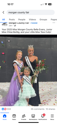 The 2025 Morgan County fair queen is Bella Evans. Chloe Buhlig is the junior Miss, and the Little Miss is Tess Cully.