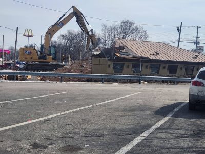 The former Pizza Hut location at 818 West Morton Avenue in Jacksonville was demolished today, marking the end of a familiar family restaurant landmark.