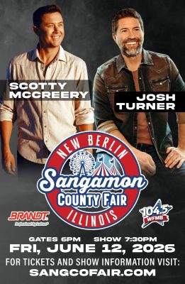 Showtime for Josh Turner and Scotty McCreery at the Sangamon County Fair June 12th is 7:30 pm. General admission and party pit tickets go on sale this Friday at 8 am on the fair’s website, sangcofair.com.